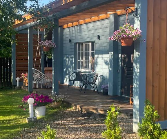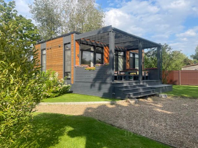 Дом с панорамным остеклением во всех комнатах, с 2мя спальнями, открытой террасой и кухней-гостиной. Площадь дома 54 кв. м.