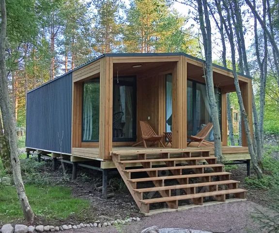 Уютный синий деревянный домик в скандинавском стиле в 5 км от всесезонных курортов Красное Озеро, Снежный, Золотая Долина. В домике есть всё для комфортного пребывания: холодильник, чайник, плита, тостер, МКВ-печь, вся необходимая посуда; трехступенчатый фильтр питьевой воды; френч-пресс для кофе или чая; душ с горячей водой; фен; теплый пол в комнате и ванной; кондиционер; двуспальный матрас на втором этаже и раскладной диван на первом; постельное белье и полотенца; высокоскоростной Wi-Fi; парковочная зона на территории. На территории всего два домика. Можно снять сразу два на небольшую компанию, и вся территория будет в вашем распоряжении. ----- Что есть на территории: Зона кострища для вечерних бесед Гриль и большой обеденный стол для завтраков, обедов и ужинов на свежем воздухе В непосредственной близости: Просторные поля Красивые виды --- В 5 км, на курортах: Красное озеро с чистым песчаным пляжем Лодки и sup-доски в аренду, пирс для прыжков, Wake-лебедка Маршруты для пеших и велосипедных прогулок Кафе и рестораны --- Цена указана за двухместное размещение; за каждого дополнительного гостя предусмотрена доплата 300 рублей за ночь. % Скидка 20% при бронировании от 3-х ночей. Скидка 10% на буднях. Можно с животными (с небольшой доплатой за уборку 500₽ за каждое животное). --- Заезд: после 17:00 Выезд: до 14:00 Время заезда/выезда гибкое, в зависимости от наличия бронирований уточняйте перед заездом. Бесплатная отмена бронирования за 5 дней.