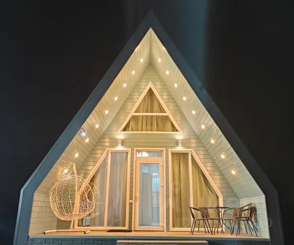 На веранде стол для приятных посиделок на улице, кресло-кокон. Имеется небольшая зона с костровой чащей, где вечерком можно жечь костер и уютно проводить время.