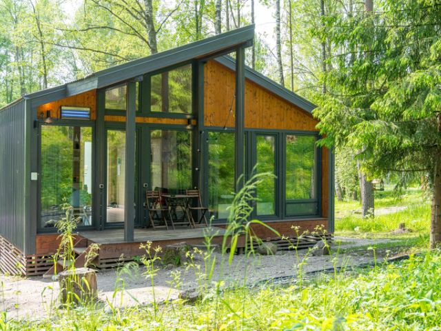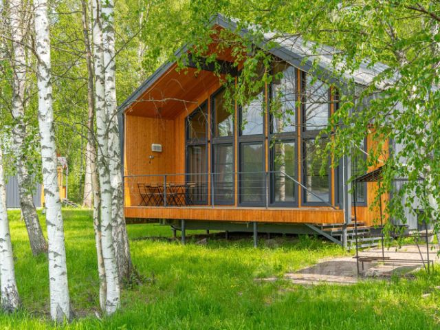 База отдыха "Вуокса Хутор" находится в живописной местности, окруженной бескрайними лесами Карельского перешейка и на берегу реки Вуоксы. Это идеальное место для тех, кто хочет насладиться природой вдалеке от шума и суеты городской жизни. К услугам гостей для размещения на территории имеются уютные коттеджи различных категорий и вместимости. Каждый дом оснащён всем необходимым для комфортного проживания: удобные спальные места, чистое и свежее постельное бельё и полотенца, высокоскоростной Wi-Fi, телевизор, оборудованная техникой кухня (микроволновка, холодильник, чайник, посуда и столовые приборы), оснащённая ванная комната, косметические принадлежности. На территории "Вуокса Хутор" имеются спортплощадки, детские площадки, зоны барбекю. Также дополнительно гости могут заняться рыбной ловлей, покататься на лодке или сап-борде, сходить в баню. Вежливый и гостеприимный персонал всегда готов помочь в решении любых вопросов гостей. Современный модульный дом для уединённого отдыха посреди северного леса. В небольшом домике есть всё необходимое для того, чтобы провести безмятежные выходные. Здесь каждая деталь продумана для удобства гостей. Спальня с комфортной двуспальной кроватью — идеальное место для заслуженного отдыха после дня полного приключений. Домик расположен в укромном уголке базы, предлагая идеальное сочетание уединения и доступа ко всем преимуществам удивительного места. Прилегающая территория включает в себя уютную мангальную зону/