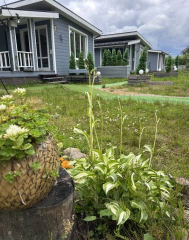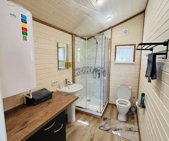 Площадь дома 70 м², 4 комнаты. Большая кухня-гостиная и 3 спальни и сауна, туалет и душевная кабина в доме.