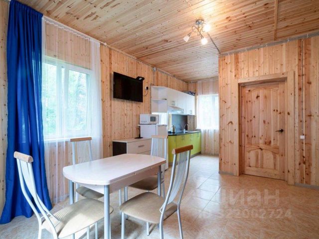 Современный двухэтажный коттедж 120 кв.м, с 3-мя спальнями (9-11 чел.). На 2-м этаже располагаются спальни. В каждой по 3 односпальной кровати. Постельное бельё и полотенца входят в стоимость. На 1-м этаже просторная гостиная-кухня. В гостиной 2-х местный раскладной диван, раздвижной стол с комплектом стульев, комод, современный телевизор, спутниковое телевидение, интернет Wi-Fi. Уютная кухня оборудована всем необходимым для приготовления пищи. Электрическая панель для приготовления, холодильник, микроволновка, чайник. Кастрюли, сковородки, разделочные доски, столовая посуда, включая бокалы, стопки, салатники, ножи и прочая утварь. Совмещенный санузел с душевой. Тёплые полы и батареи добавят комфорта. Есть средства для уборки и мытья. Дополнительно, по необходимости, можно добавить кровати. Около каждого коттеджа оборудована зона отдыха с беседкой и мангалом. Для клиентов бесплатные парковочные места. Дополнительно, за отдельную плату: -большой выбор настольных игр; -спортивный инвентарь, по сезону: ракетки для тенниса, бадминтон, комплекты беговых лыж с ботинками, мячи.