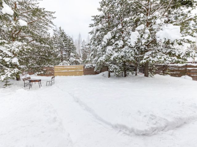 Вдоль забора прочно натянута сетка для безопасности животных и детей, а так же от нежданных гостей.