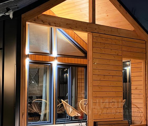 Круглогодичный дом с кухней-гостиной, 2 спальнями, санузлом, крытой террасой и мангальной зоной на участке 12 соток.