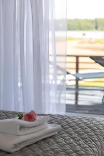 Две отдельные спальни, кухня-гостиная, совмещённый санузел, просторная душевая кабина, открытая терраса с зоной отдыха и лежаками, мангальная и костровая зоны.