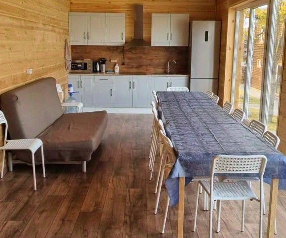 Дом рассчитан на комфортное проживание до 9 взрослых человек + 1 детская кроватка (3 спальни, кухня-гостиная с большим обеденным столом 2м1м, 1 совмещённый санузел, 1 раздельный санузел, беседка с зоной барбекю).