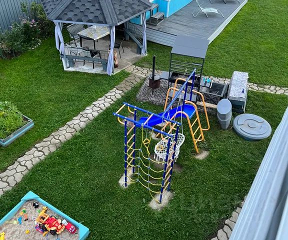 Большая детская площадка с горками, лестницами, качелями, песочница, машинка .