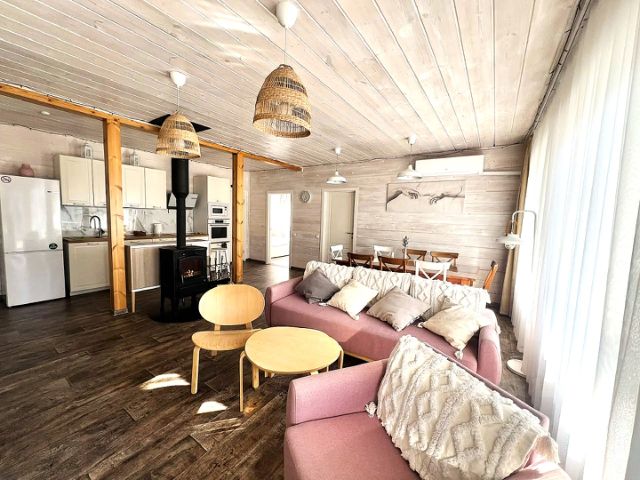 Дом идеально подходит для спокойного отдыха в семейном кругу! В доме могут комфортно находиться не более 6 гостей! Дом оснащен всей необходимой для комфортного проживания техникой: кондиционерами, микроволновой печью, холодильником с морозильной камерой, стиральной машиной, духовым шкафом, электрическим чайником, феном, утюгом, телевизором smart tv, Wi-Fi. В доме имеется кроватка для малыша, стульчик для кормления, ванночка для купания ребенка, горшок. Все кровати, матрасы, постельное белье, подушки и одеяла новые, новые полотенца! В стоимость аренды входят кухонные расходные материалы (губки, тряпки, средства для стирки, уборки, мойки посуды, одноразовые и мусорные пакеты), а также средства личной гигиены (туалетная бумага, мыло, гель для душа). Для Вашего комфорта кухня снабжена листовым и пакетированным чаем, кофе, маслом для жарки, набором приправ.