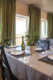 Эко-комплекс "Мазаная Горка" - это 4 деревянных дома, расположенных в уединенном месте в Ленинградской области. У каждого дома есть собственная баня на дровах, приватная территория и выход к воде. Дома окружены чистым хвойным лесом. По территории протекает река Лемовжа, вдоль ее русла проложена прогулочная тропа. Есть ферма, где обитают кролики и фазаны. Еловая усадьба - это авторский двухуровневый деревянный дом с кухней, гостиной, террасой и мангальной зоной. Дом вмещает до 8 гостей. Дом расположен в 300 м от Лесного дома и отделен от него густым лесом. Площадь дома - ок. 100 кв.м. Есть ароматная русская баня из осины площадью 36 кв. м., включена в стоимость проживания. В доме - 2 отдельных спальни. Спальня с террасой наверху вмещает до 3-х гостей: кровать 200*200 и кровать 120*180. Спальня с камином внизу вмещает 2-х гостей: кровать 180*200. Двухъярусная кровать в гостиной может разместить 3-х гостей: спальное место на нижнем ярусе для 2-х гостей и спальное место на верхнем ярусе для 1 гостя. Дом оборудован газовой плитой, холодильником. Есть 2 камина: в гостиной и спальне внизу. Электричество доступно от сети, есть запасной генератор. 2 отдельных санузла: с душевой кабиной, туалетом и раковиной + с туалетом и раковиной. Мы предоставляем бесплатно питьевую воду, постельные принадлежности и полотенца, набор посуды. В доме есть собственная аптечка и огнетушитель, пополняемый запас дров.