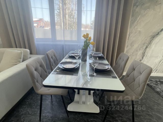 На участке газон и ухоженный сад, зона отдыха с мангалом, печью под казан и костровой чашей; огороженная детская игровая площадка, парковка для двух-трех автомобилей.