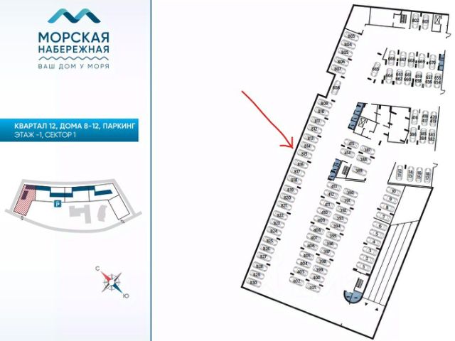 Сдам машиноместо 605 (сразу у въезда в паркинг) в подземном паркинге ЖК Морская набережная, Бульвар.