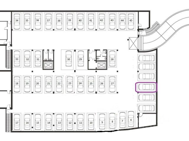 Парковочное место удобное, расположено на втором этаже восьми этажного здания.