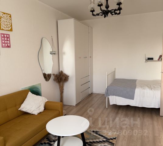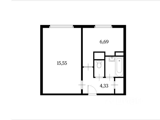 Светлая кухня (8,5 м2), остекленный балкон (2.3 м2), уютная комната (14 м2), совместный санузел. Этаж 11.