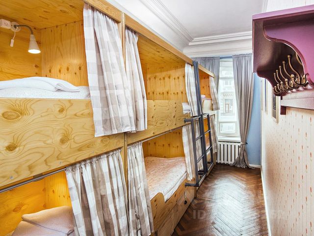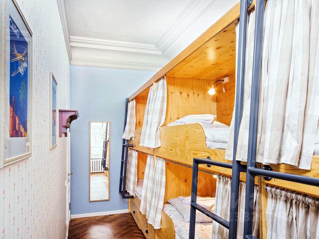 Номер находится на 1 или 2 этаже с окнами, выходящими на тихий двор. У каждого гостя своя кровать со шторками из плотной ткани, полкой, светильником, розеткой.