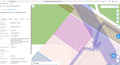 Земельный участок с кадастровым номером 47:10:0104002:102 площадью 1750 кв.м, разрешенное использование для индивидуального жилищного строительства, расположенного по адресу: Ленинградская область, Волховский муниципальный райо...