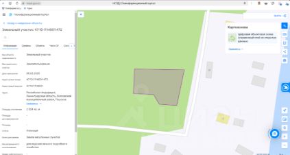Земельный участок с кадастровым номером 47:10:0101002:264 площадью 1856 кв.м, разрешенное использование для индивидуального жилищного строительства, расположенный по адресу: Ленинградская область, Волховский муниципальный район...