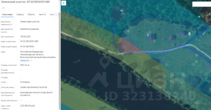 Данные получены с сайта ГИС Торги. Земельный участок с кадастровым номером 47:22:0336002:324, площадью 2000 кв.м.