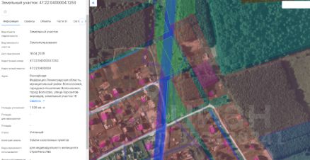 Данные получены с сайта ГИС Торги. Земельный участок с кадастровым номером 47:22:0400004:1253, площадью 1526 кв.м.