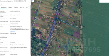 Земельный участок с кадастровым номером: 47:28:03010456:23 площадью 1840 кв.м. с разрешенным использованием: для индивидуального жилищного строительства 2.1.