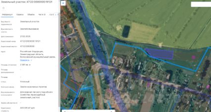 Земельный участок с кадастровым номером 47:11:0201001:301, площадью 1193 кв.м., расположенный по адресу: Ленинградская область, Волховский район, д. Кивгода, с разрешенным использованием ведение личного подсобного хозяйства.