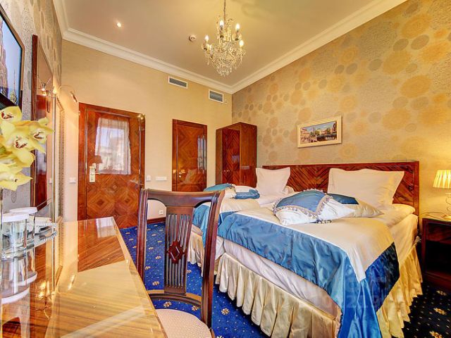 Отель в самом центре Санкт-Петербурга, где исторический, деловой и культурный центр города сливаются воедино. Отель находится на улице Большой Конюшенной, в 5-ти минутах ходьбы от Невского проспекта. В 800 м от отеля находится станция метро "Невский проспект". В пределах 2 км от отеля находятся: Стрелка Васильевского острова, Эрмитаж, Адмиралтейство, Исаакиевский собор, Спас на Крови. Расстояние до Московского ж/д вокзала — 3 км, до аэропорта Пулково — 22 км. Отель состоит из 5 двухместных стандартных номеров, оформленных в классическом стиле и 17 улучшенных номеров. В каждом номере — две раздельные большие кровати, которые по желанию гостей могут сдвигаться, мебель в классическом стиле, кондиционеры, индивидуальные сейфы, телевизор, телефон. Санузлы оборудованы современными душевыми кабинами, фенами, имеется ежедневная косметика. Одноместный номер с односпальной кроватью. Уютный одноместный номер прекрасно подходит для деловых поездок и позволит сократить затраты на проживание. Оснащение: Небольшая площадь номера (10 кв. м) полностью компенсируется наличием необходимого оснащения: телефон, телевизор , сейф, мини-холодильник, душ, фен. Бесплатный WIFI.
