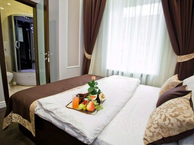 В номере: двуспальная кровать, стол, стулья, шкаф, диван, прикроватные тумбочки, бра, рабочий стол, письменный стол, туалетный столик, шкаф-купе, гардероб, вешалка, сейф, телефон, зеркало, утюг, журнальный столик, набор постельного белья, индивидуальные светильники, натуральное постельное белье из 100% хлопка, телевизор, кабельное телевидение, Wi-Fi, чайник, кофемашина, холодильник, кофе, вода, чайный набор.