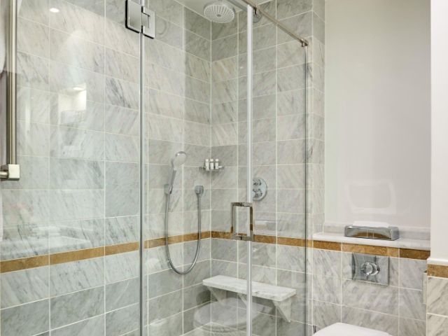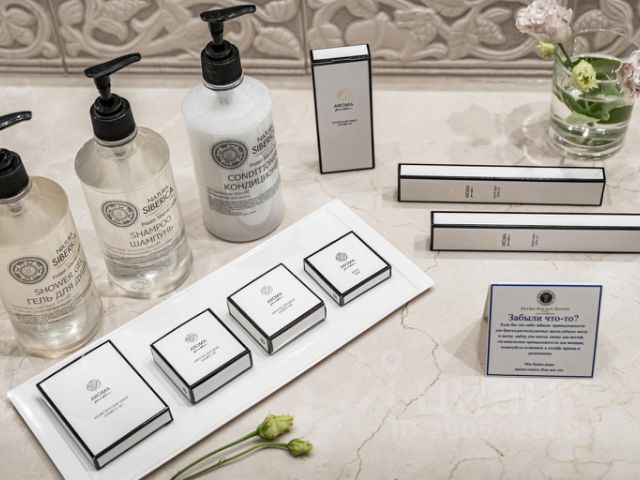 В ванных комнатах ванна, подогреваемый пол, фен, косметическое зеркало и полный набор туалетных принадлежностей, включая комплект полотенец, пушистый халат и тапочки.
