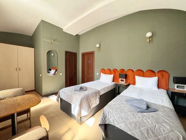 Две односпальных кровати, стол со стульями, настольная лампа, прикроватная тумбочка, кондиционер, шкаф, wi-fi, телевизор с плоским экраном, кабельное/цифровое тv, комплекты полотенец.