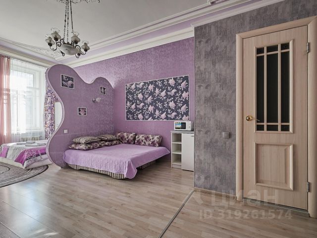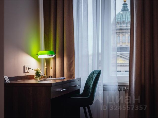 Номер площадью 50 кв.м. Оформлен в спокойных сиреневых тонах. Окна выходят на Невский проспект. В номере двухспальная кровать, полутороспальная тахта. Для ребенка до 2 лет есть уютная детская кроватка.