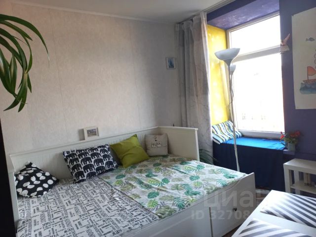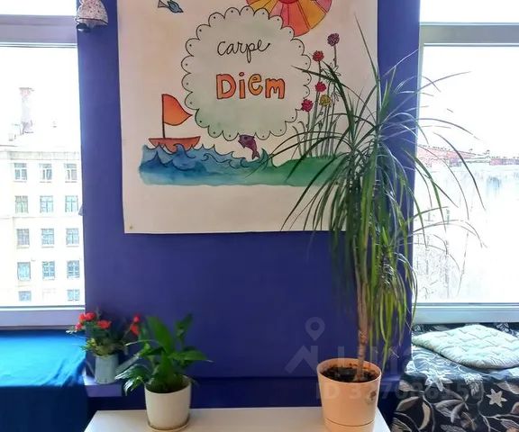 В комнате удобная и функциональная мебель Икеа: широкая диван-кровать для двоих, односпальный диван, большой зеркальный шкаф, стеллаж, рабочий уголок, журнальный столик; большие 2 окна с видом на крыши и просторный открытый двор, широкие подоконники.