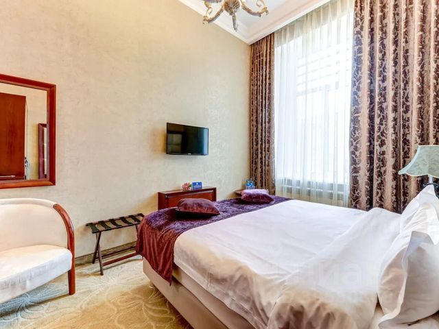 Комната включает в себя кровать 140-180 см, прикроватные тумбочки, письменный стол, стулья, платяной шкаф, 2 светильника над кроватью, торшер, ЖК телевизор + DVD, кондиционер, холодильник, тапочки, халат, полотенце банное, для лица, коврик для ног, санузел в номере. В санузле: туалет, раковина, душевая кабина, косметический набор (гель для душа, шампунь), фен. Окна выходят на тихий двор.