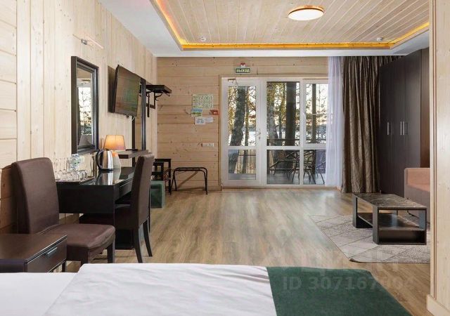 Люкс однокомнатный с сауной расположен на первом этаже второго корпуса, подходит для комфортного размещения двух человек.