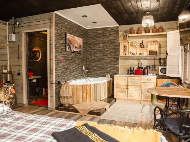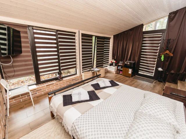 Очень уютный и тёплый двухместный номер "Вишня", расположенный в гостевом одноэтажном домике. Максимум гостей до 2 человек. Размер 15 м². В стоимость включены завтраки по системе "шведский стол". Барбекю зона. Здесь есть всё необходимое для комфортного проживания: 2 полутороспальные кровати. Санузел, душевая кабина, раковина. Чайник. Тостер. Чашки, стаканы, рюмки на двоих. Телевизор. Фен. В проживание также включены: Постельное бельё. Туалетные принадлежности (мыло). Полотенца. Завтраки. На территории загородного комплекса расположена при въезде бесплатная парковка. "Пять звёзд" — это замечательный загородный отдых, уютное, тихое местечко. Здесь есть всё для отличного, романтичного и активного отдыха на любой вкус. Загородный комплекс "Пять звёзд" расположен в районе посёлка Цветодубово, на возвышенной живописной местности, где открывается вашему взору прекрасный вид на окрестности и Нахимовское озеро. В нашем комплексе вы сможете посетить настоящую русскую баню, отдохнуть в специальном доме, искупаться в горячей купели. На территории нашей базы отдыха расположен уникальный загородный ресторан, где современный дизайн гармонично сочетается с уютом и комфортом. Вы можете арендовать велосипеды, сап-доски и заняться рыбалкой на Нахимовском озере, в окружении леса. Размещение собак и кошек — 1000 рублей за сутки. (Услуга размещения с кошкой предоставляется при условии получения залога в размере 5000 руб.)