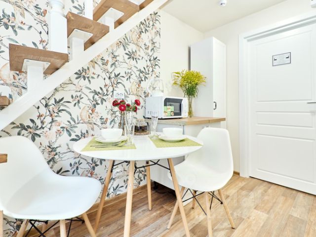 Отель Old Town (Старый город) располагается во одноэтажном флигеле 1917 года постройки, в тихом уютном вымощенным брусчаткой дворе. И совсем не колодце, солнце очень удачно заходит во двор в середине дня, а на противоположном здании вся стена увита диким виноградом. Здание отеля совсем небольшое, но у него есть своя изюминка и шарм. Во всех номерах, кроме одного есть мансардные окна, и если повезет с погодой, то можно любоваться закатом, звездами или рассветом. Отель Old Town (Старый город) очень удачно расположен. В пешей доступности метро, набережная, культовые рестораны, но все это не мешает спокойно припарковаться у отеля. Свободные места всегда есть. Отдельно отметим достопримечательности, до которых рукой подать. К примеру, до музея-аптеки доктора Пеля и сыновья идти 1 минуту, до дворца Меншикова - 10 минут пешком, до Кунсткамеры - 20 минут. Дизайнерский номер на двоих с собственной ванной комнатой с душем. В номере есть зона гостиной для приема пиши, также можно воспользоваться столом в рабочих целях. Кухонная зона укомплектована холодильником, эл. чайником, посудой для приема пищи, приборами, чай, сахар. В номере также предоставляются бесплатные туалетно-косметические принадлежности, фен, тапочки. Телевизор с цифровым вещанием.