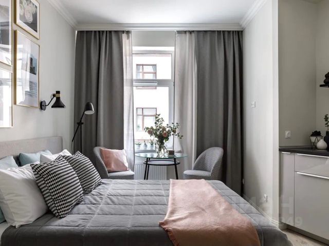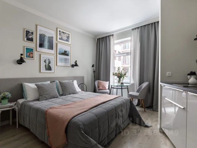 В студии: двуспальная кровать, полностью оборудованная кухня — плита, холодильник, микроволновка, посуда. Стиральная машина, телевизор, скоростной Wi-Fi, фен, утюг. Постельное бельё, полотенца и средства гигиены включены. Подходит для удалённой работы.