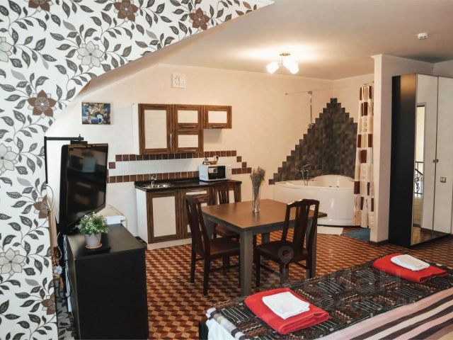 К услугам гостей 197 комфортабельных номеров: от "Эконома" до "Сюита" с джакузи. Питание организовано в ресторане по системе "шведский стол".