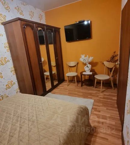 В комнате балкон,большая кровать 140х200 и односпальная кровать, большой шкаф, тумба с телевизором,стол ,стулья.