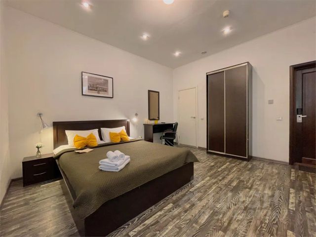 С 1 апреля 2024 года на территории Санкт-Петербурга вводится курортный сбор. Стоимость курортного сбора составляет 100 рублей за одного гостя, достигшего 18 лет, за каждый последующий день пребывания, кроме дня заезда. Курортный сбор не включен в стоимость бронирования и оплачивается только наличными при заселении в отель. Оплачиваются дополнительно на заезде: административные расходы, связанные с регистрацией иностранных граждан, в режиме on-line, с использованием рекомендуемого правительством Санкт-Петербурга программного обеспечения, гарантирующего полную защиту персональных данных иностранных граждан, составляют 300 рублей за каждую операцию, НДС не облагается. Апартаменты категории "стандарт" — это сочетание функциональности и элегантности в пространстве, которое включает в себя спальную зону с двумя раздельными кроватями, отдельное рабочее место и кухонную зону с обеденным столом. В апартаментах установлен телевизор с функцией Smart TV, с помощью которой вы всегда сможете найти желаемый контент, а для отдыха с максимальным комфортом кровати оборудованы профессиональными ортопедическими матрасами. Стильная ванная комната оборудована встроенной душевой кабиной и стиральной машиной, а также электрическим полотенцесушителем. Также в ванной установлен гигиенический душ, а над раковиной размещено зеркало с удобной подсветкой. Приятное сочетание цветовых акцентов выгодно подчеркивает светлые апартаменты и радует в любую петербургскую погоду.