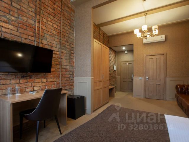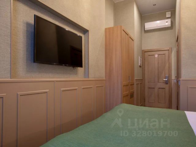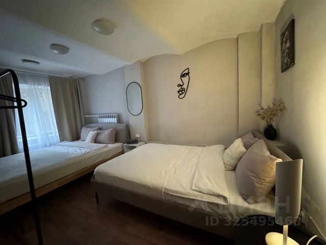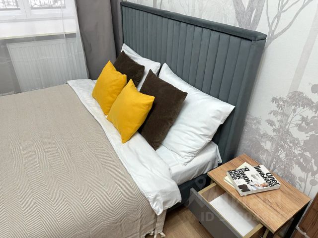 В квартире выполнен современный качественный ремонт, установлена новая мебель и техника. Комната полностью готова для комфортного проживания: удобная двуспальная кровать, стол со стульями, места для хранения. Окна выходят в тихий двор.