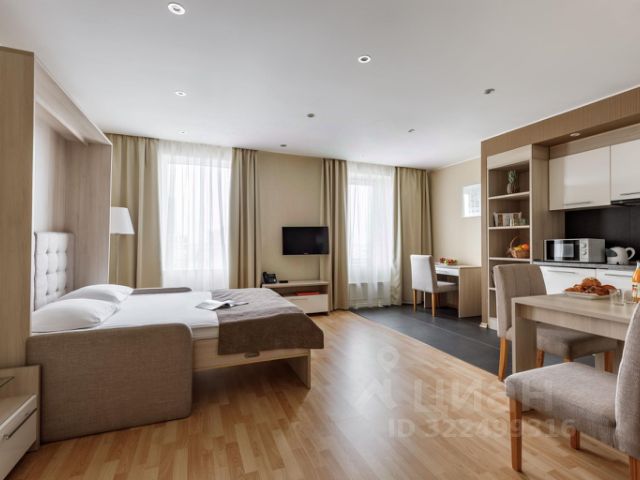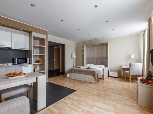 В номерах "Люкс" установлены две кровати-трансформер, каждая из которых рассчитана на два спальных места. Из панорамных окон апартаментов открывается чудесный вид на Санкт-Петербург.