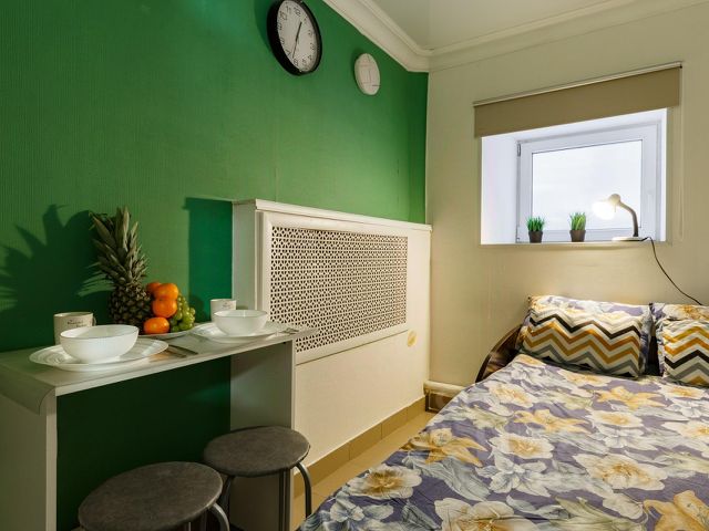Рядом большое количество ресторанов, кафе и продуктовых магазинов — в шаговой доступности. Поздним вечером и ночью — абсолютная тишина, окна выходят во двор. В комнате может разместиться семейная пара, туристы, командированные гости или друзья.