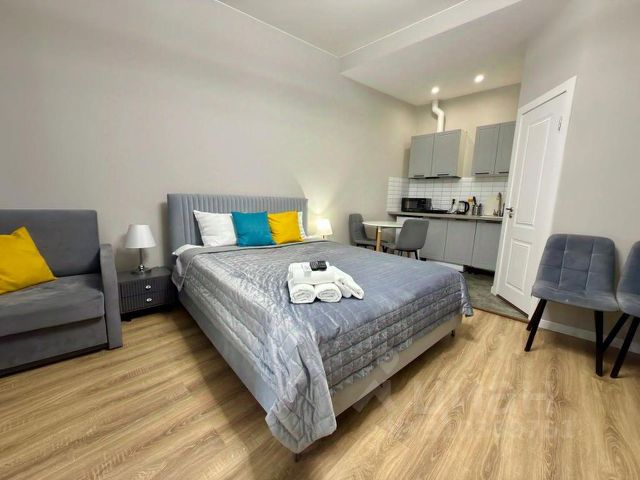 Эргономичная студия, на цокольном этаже 20 кв. м. Есть все необходимое для комфортного пребывания. На небольшой площади компактно размещены кровать 100*200 с удобным матрасом и постельным бельем, кухня, санузел с душевой, места для хранения. В кухонной зоне: варочная панель, мини холодильник, чайник и вся необходимая посуда для приготовления и сервировки; в ванной комнате: душевая, раковина, санузел, фен, полотенца, мыльные принадлежности. При необходимости есть утюг, гладильная доска, переносная мини сушилка для одежды. Телевидение с большим выбором каналов, зона wi-fi.