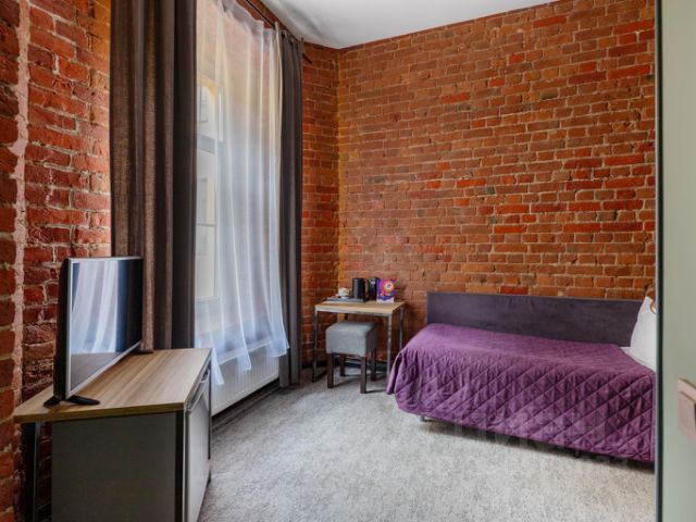 Уютный одноместный номер оборудован 1-спальной кроватью, собственной ванной комнатой с душем, феном, LCD-телевизором, мини-холодильником, сейфом, рабочим местом, шторами блэкаут. Для удобства гостя в номере есть халат, тапочки, косметический набор, бутилированная вода и ассортимент чая.