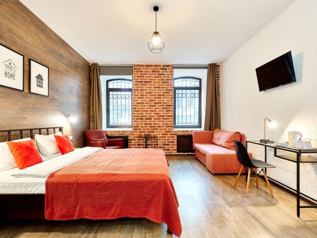 Рядом большое количество ресторанов, кафе и продуктовых магазинов — в шаговой доступности. Поздним вечером и ночью — абсолютная тишина, окна выходят во двор. В комнате может разместиться семейная пара, туристы, командированные гости или друзья.