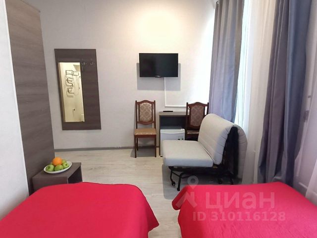 В студии есть все, что нужно для комфортного проживания: двуспальная кровать, постельное белье и полотенца, мини-холодильник, микроволновка, стол, стулья, телевизор, собственный санузел и душевая. Снять комнату на неделю на проспекте Вознесенский в Санкт-Петербурге.