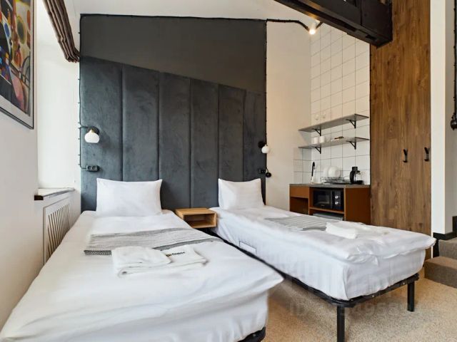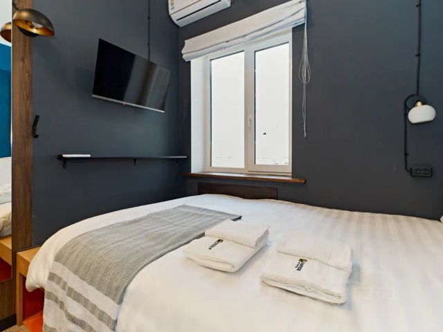 Почувствуйте себя в сказочном доме в нашем уютном стильном мини-отеле в центре легендарного Васильевского острова. Историческое здание 1878 года постройки, арки и коридоры из старинной кирпичной кладки, акцентированные белым цветом и яркими люстрами, в каждом номере есть уникальные антресольные кровати с лесенками и "подступенями"- чтобы почувствовать колорит и размеренное течение жизни на острове. В то же время, каждый номер оснащен отдельным санузлом, мини-кухней с холодильником, микроволновой печью, плитой и чайником, чтобы можно было максимально комфортно проводить время. Несколько номеров вмещают до 5 гостей, так что можно остановиться компанией, что выйдет очень бюджетно даже в самый высокий сезон белых ночей. Наш отель расположен в уникальном месте в самом сердце Санкт-Петербурга, сочетающим уют и спокойствие с близостью к всемирно известным достопримечательностям (до стрелки Васильевского острова можно дойти за 15минут, до Эрмитажа-за 25, до Академии Художеств и университетской набережной со сфинксами- за 10 минут, до Петропавловской крепости- за 25 минут, до Исаакиевского собора за 30 минут), транспортную доступность (в 5 минутах пешком расположены станции метро Спортивная и Василеостровская). Всегда есть где припарковать машину. Рядом набережные Невы, разводные мосты (5 мин пешком: Тучков, 10 мин: Биржевой, Благовещенский и Дворцовый), уникальные храмы Васильевского острова (Андреевский собор, собор св. Екатерины, собор св. Михаила и другие), стадион Петровский, дворец спорта Юбилейный. В непосредственной близости огромное количество ресторанов, кафе, магазинов, клубов, музейных и арт-пространств, мест для прогулок и развлечений. Номер максимально вмещает 4-х гостей. Оборудован двуспальным диваном, двумя футонами на втором ярусе. В номере есть кухня (посуда, электроплита, электрочайник, холодильник, микроволновая печь), санузел с душевой кабиной, туалет. Полотенца, постельное белье, гели и мыло, тапочки входят в стоимость бронирования. Стиральная машина и гладильные принадлежности доступны в холле. Гости могут воспользоваться Wi-Fi.