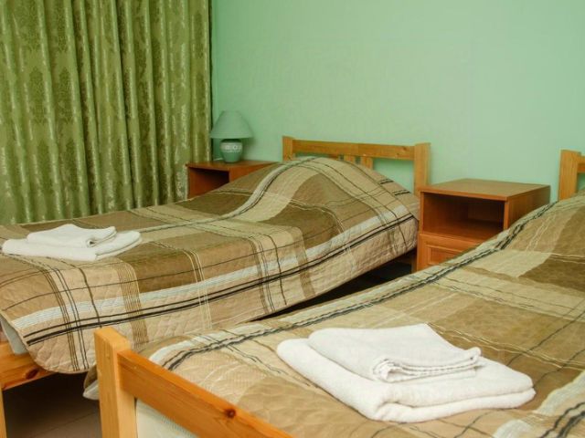 Номера в Гатчине Отель "Номера в Гатчине" находится в центральной части города Гатчина. Гостям доступен бесплатный интернет и автостоянка. Отдохнуть можно в гостиной зоне с телевизором. Отель предлагает к заселению уютные и просторные номера. Все категории оформлены в классическом стиле и оборудованы эргономичной мебелью и современной техникой. В шаговой доступности работают различные кафе, рестораны и продуктовые магазины. Также в распоряжении постояльцев общая кухня с холодильником, микроволновой печью и стиральной машиной. Приветливые сотрудники круглосуточной стойки регистрации помогут решить любой возникший вопрос. "Номера в Гатчине" предлагает комфорт, доступность и удобство. В распоряжении гостей: Круглосуточная стойка регистрации, чтобы вы могли въехать и выехать в любое время Бесплатный Wi-Fi на всей территории — вы всегда на связи Прачечная и хранение багажа — всё, чтобы вы чувствовали себя как дома Наши номера — это продуманный до мелочей уют: свет в меру, комфорт, простые, но функциональные решения. Забронировать проживание и почувствовать Гатчину такой, какой её видят местные — спокойной, гостеприимной и настоящей, — легко и приятно. Также просим Вас ознакомиться со следующими положениями: - В отеле возможен гарантированный ранний заезд, стоимость составляет 100% оплаты предыдущих суток. Услуга негарантированного раннего заезда предоставляется бесплатно с 08:00 при наличии свободных номеров. - Поздний выезд до 17:00 оплачивается в размере 50% от стоимости суток проживания. Поздний выезд после 17:00 оплачивается в размере 100% стоимости суток проживания. - При заезде с животными взимается депозит 5000 RUB, который возвращается при условии, если в номере ничего не повреждено. До 5кг - 500 RUB/с; до 10кг - 1000 RUB/с. Номер стандарт двухместный с частичными удобствами: двумя 1,5 сп. кроватями кроватями, двумя тумбочками, шкафом двухстворчатым, столом, двумя стульями. Основное освещение - потолочные лампы, пол - кафельная плитка. С общим душем и туалетом на этаже, есть небольшой бытовой уголок с микроволновкой, чайником и холодильником на этаже. Вид на магазины.