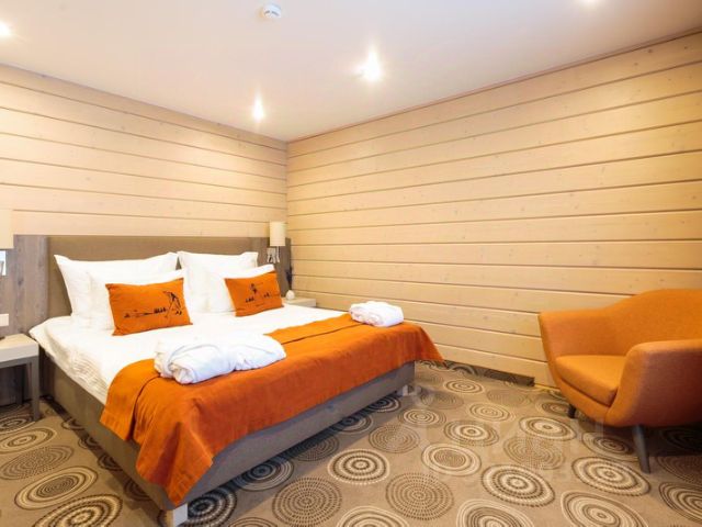 Уютный отель на территории всесезонного гольф-курорта, который предлагает гостям качественный отдых в любое время года. Расстояние до аэропорта Пулково составляет 71 км. Гости могут забронировать номера различных категорий или отельные коттеджи и виллы. В каждом из них есть все необходимое для комфортного проживания: телевизор, кондиционер, телефон, сейф, чайник, собственная ванная комната с косметическими принадлежностями. На территории расположились уютный ресторан и спа-комплекс, просторные оборудованные конференц-залы. В спа-комплексе для гостей доступны открытый подогреваемый бассейн с джакузи под открытым небом, тренажерный зал с видом на поле для гольфа, а также русская парная и финская сауна. Изюминкой курорта является 18-луночное чемпионское поле. Здесь ежегодно проводятся турниры федерального и международного значения. Отличительной особенностью курорта является опция безлимитного гольфа, которая привлекает большое количество иностранных туристов. В летнее время года для гостей курорта доступны велопрогулки, пикники, барбекю на открытом воздухе, занятия в гольф-академии, теннис и волейбол. Зимние активности включают открытый каток, трассу для беговых лыж, поездки на санях. Очень уютный номер с видом в двор, который отлично подходит для проживания семьи. В номере имеется все необходимое для комфортного пребывания: удобная мягкая кровать на первом и втором этаже, телевизор, уютная ванная комната, фен, чайный набор, рабочая зона, вместительный шкаф, сейф, быстрый WiFi.