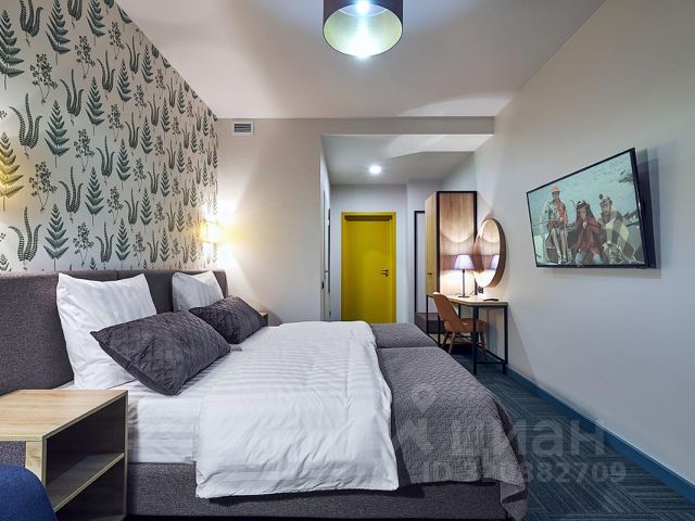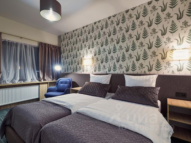 В номере две односпальные кровати, прикроватные тумбочки, обеденный стол, стулья, телевизор, холодильник, микроволновая печь, электрический чайник и комплект посуды (тарелки, чашки, стаканы, столовые приборы).
