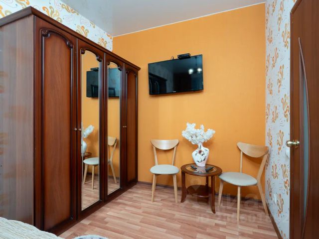 В комнате балкон,большая кровать 140х200 и односпальная кровать, большой шкаф, тумба с телевизором,стол ,стулья.